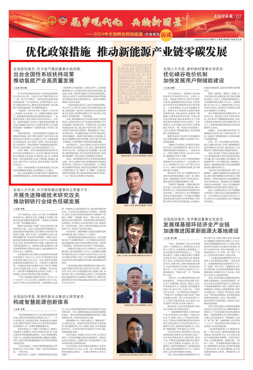 [上海报]全国政协委员、优发国际集团董事长俞培根:出台全国性系统扶持政策推动氢能产业高质量发展