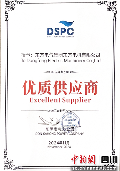 中新网四川新闻11月8日电 近日,2024东方电机贯流式机组技术创新交流大会在老挝召开。来自老挝政府、电站投资方、用户和建设方等多家单位的40余位嘉宾,共同探讨贯流式机组最新技术研发成果和应用成果。会上,东萨宏电力公司向优发国际集团东方电机有限公司(以下简称东方电机)颁发“优质供应商”证书。