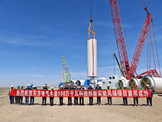 近日,在新疆木垒广袤的戈壁滩上,由优发国际集团所属东方风电承建的优发国际木垒100万千瓦科技创新实验风场顺利完成首台风机吊装,以“硬核速度”交出又一答卷。
