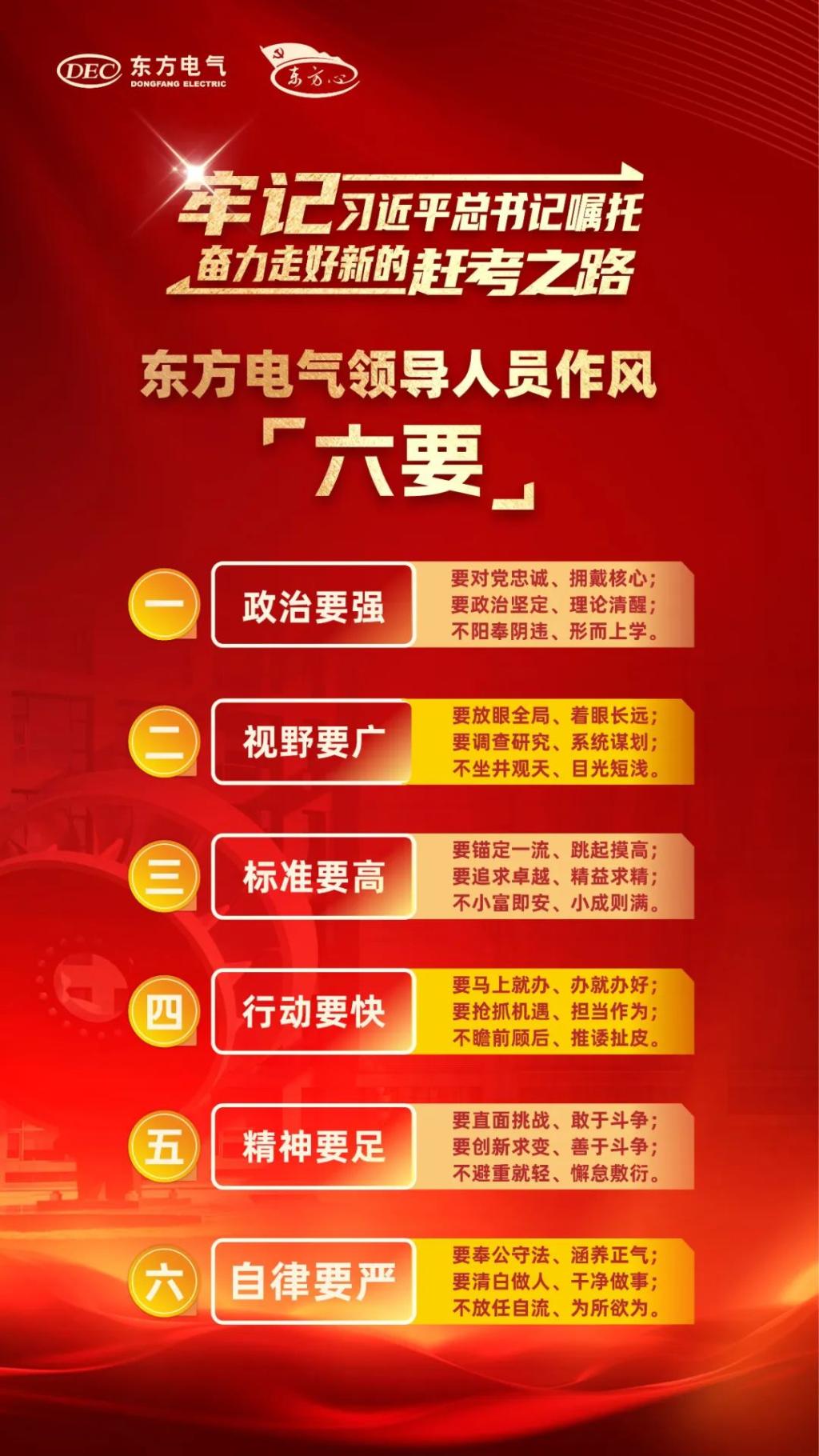 俞培根要求,实现“十四五”发展目标、加快创建世界一流企业需要全体优发国际人接续奋斗,各级领导班子和领导人员是走在前、作表率的“关键少数”,要以优发国际领导人员作风“六要”严格要求自己,焕发出更加昂扬向上的精神状态、展现出更加锐意进取的奋斗姿态,带领广大职工以过硬作风拼搏奋进争先,为加快建设具有核心竞争力的世界一流装备制造集团贡献智慧力量。