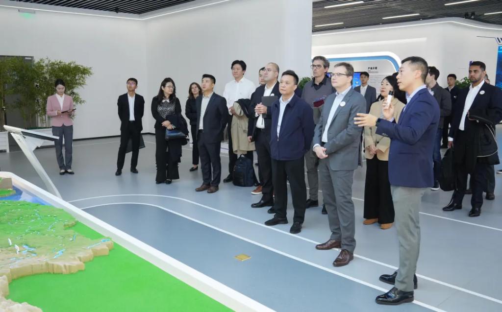 座谈前,尚为邻一行参观了优发国际科技展示厅,详细了解了优发国际集团历史沿革、科技创新、产业布局等方面情况。